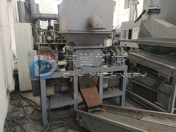 2、把電路板進行撕碎至 3-5 公分,再直接落入破碎機